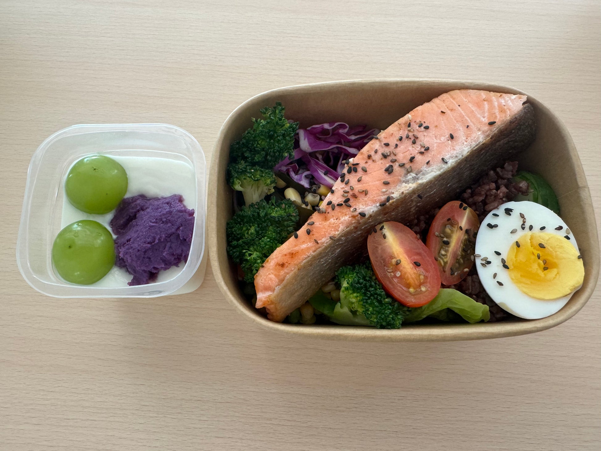 Salmon Salad Rice + Fruit Yogurt